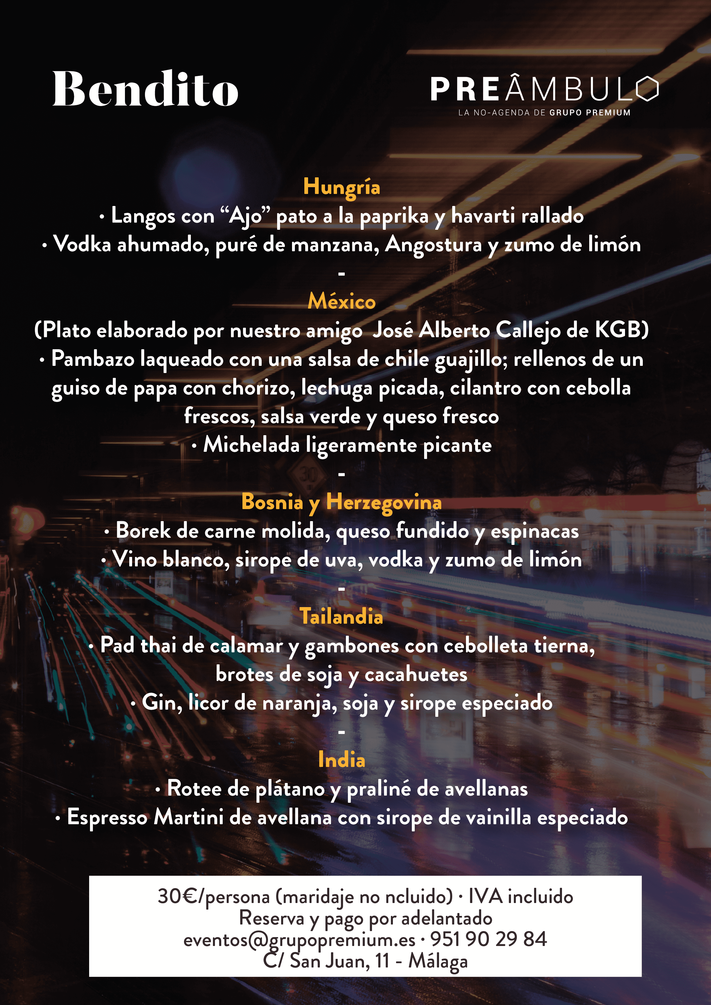 El 6 de Junio tienes una cita en nuestro restaurante Bendito: Disfruta de una cena con maridaje donde charlaremos de la importancia de la comida callejera en las diferentes culturas del mundo y en la que probaremos algunos de los mejores platos street food.